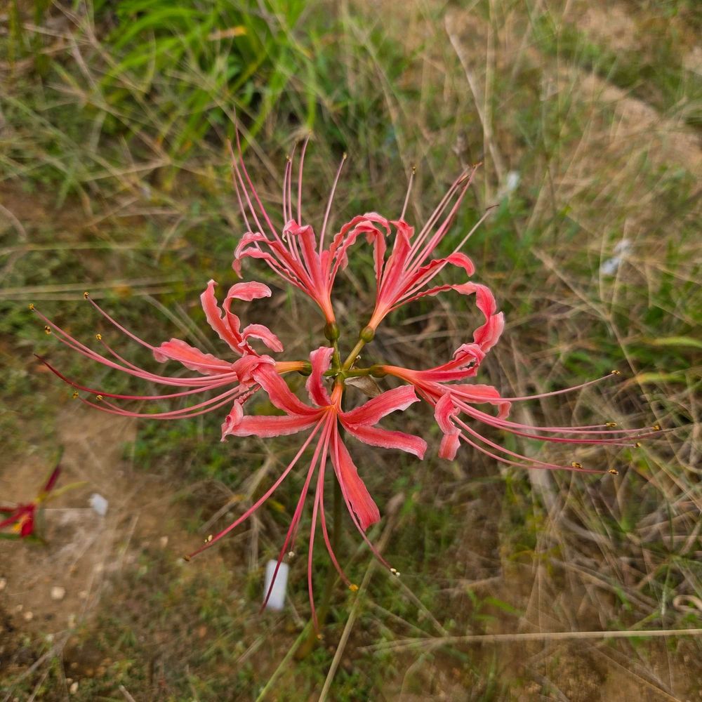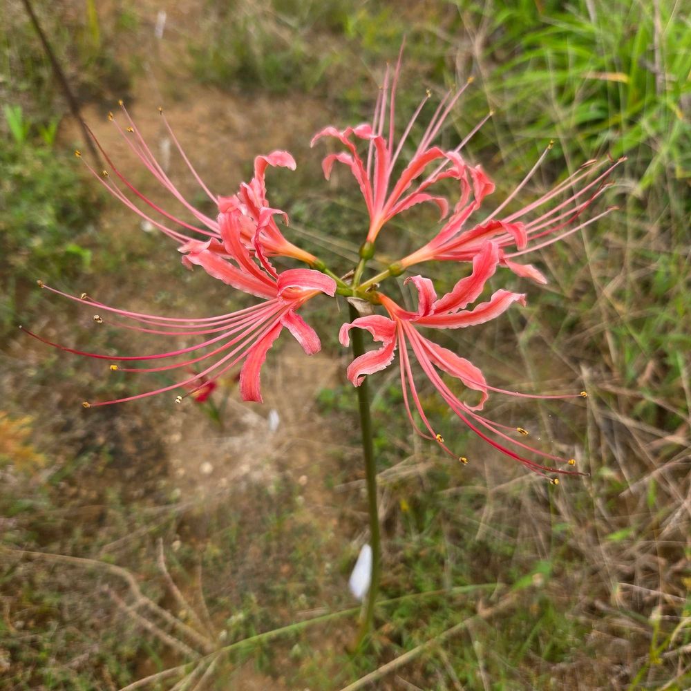 開花しました!ヒガンバナより若干薄めの花色ですが、蕊がグラデーションになっているので綺麗です😍😍