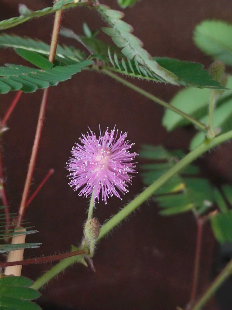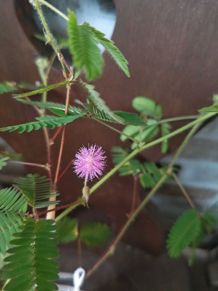 種蒔きっ子の苗を貰ったオジギソウ。初めての花が咲きました〜✌。友人のお家より遅れる事約20日。嬉しい開花です🙌🙌。