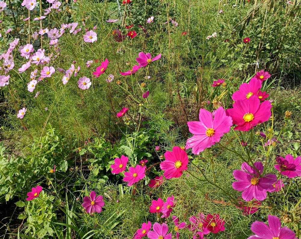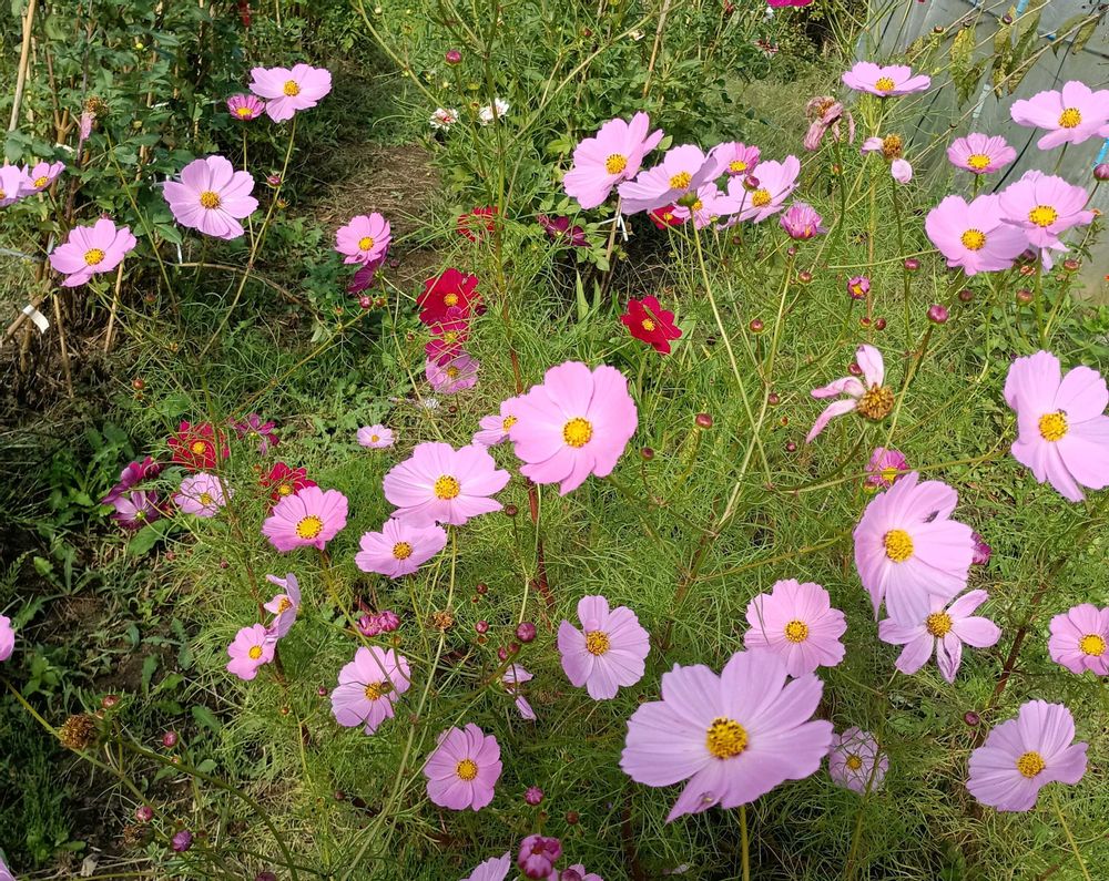 ウチのコスモスはもう終わりの頃になりました。なぜか白いコスモスが絶えてしまいました。黄花コスモスの種を採取し花が無い所を✂️。
