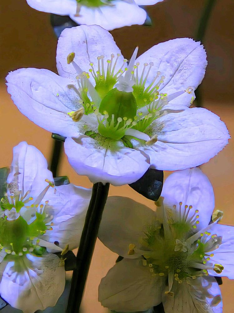 ウメバチソウの飾り雄蕊の蜜腺は見た目だけで蜜を出していないという説もありますが、実際には櫛状の根本の2ヶ所から蜜が出ていてほんのり甘く虫が集まっているそうです。