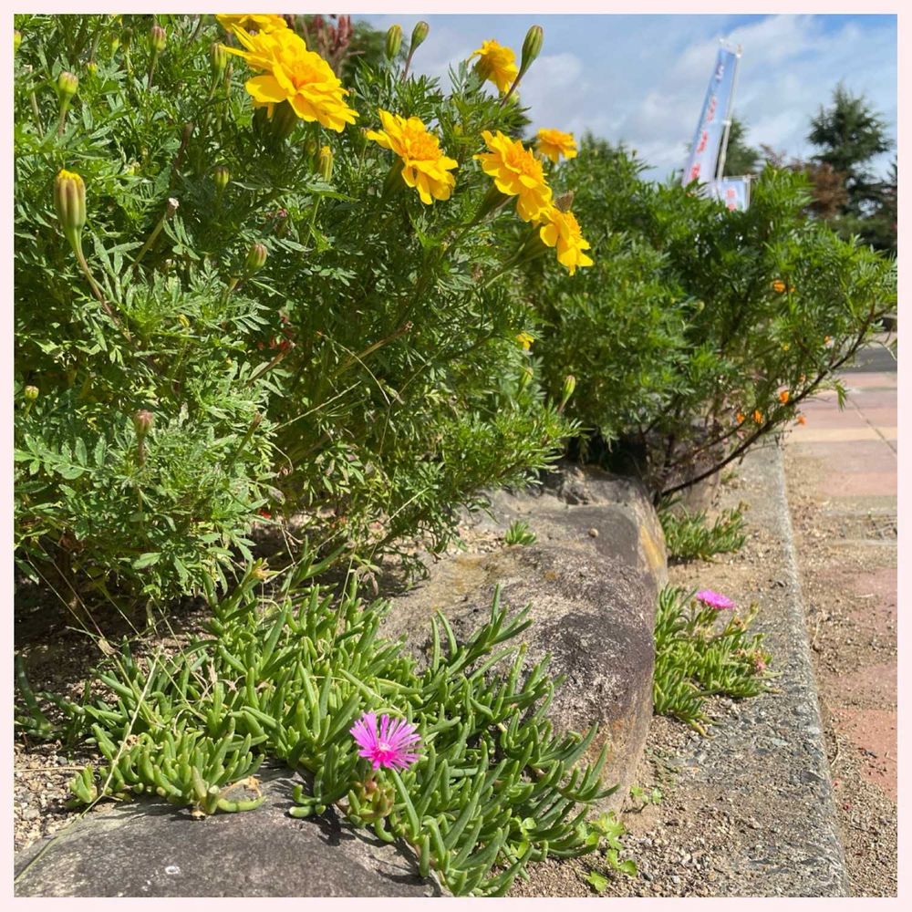 マツバギクはアパートの花壇に長く伸びていたので✂️してこちらに今夏移植してみました♬一度根付くと毎年出てくるようです♬石に沿ってピンク色のお花がたくさん咲いてくれると嬉しいです☺️