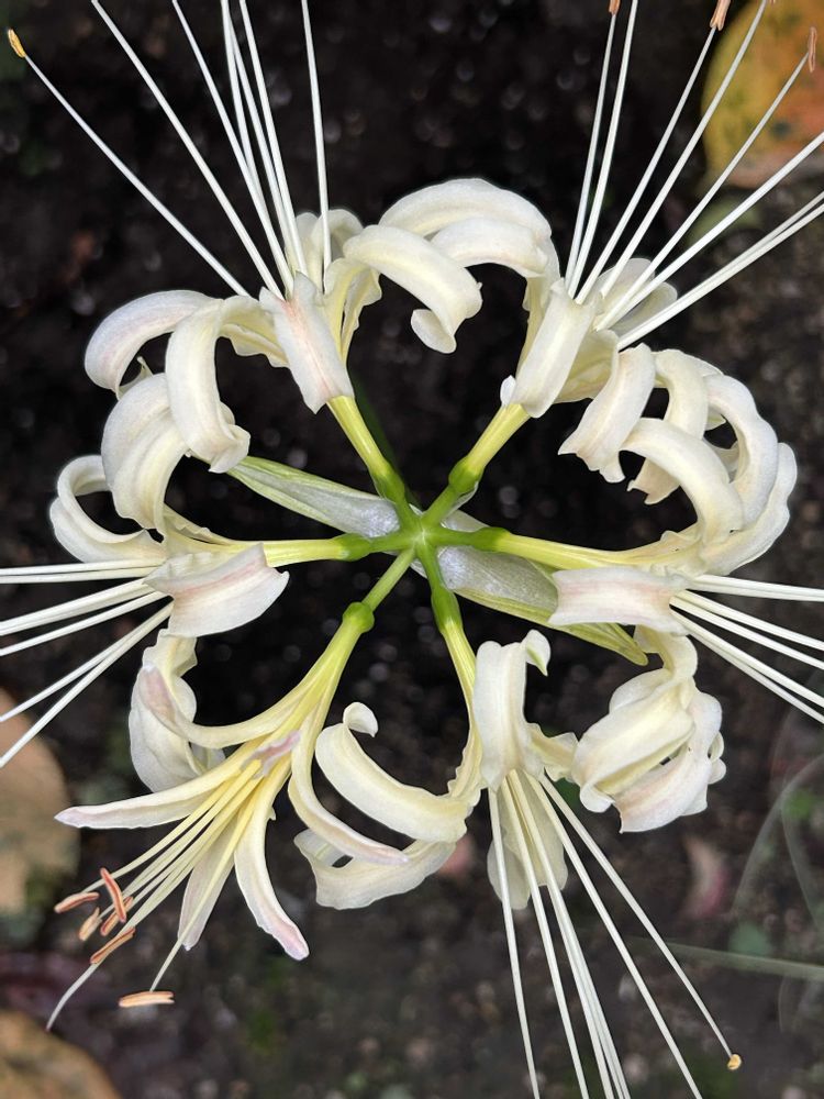 おはようございます。いつもお世話になってます。朝からどんよりの高松です。白い彼岸花も素敵ですね。先週辺りから四国あちこちを移動してると車窓からたくさん彼岸花見えます、残念ながら白は群生していないかも。青い彼岸花もあったら楽しいのに。