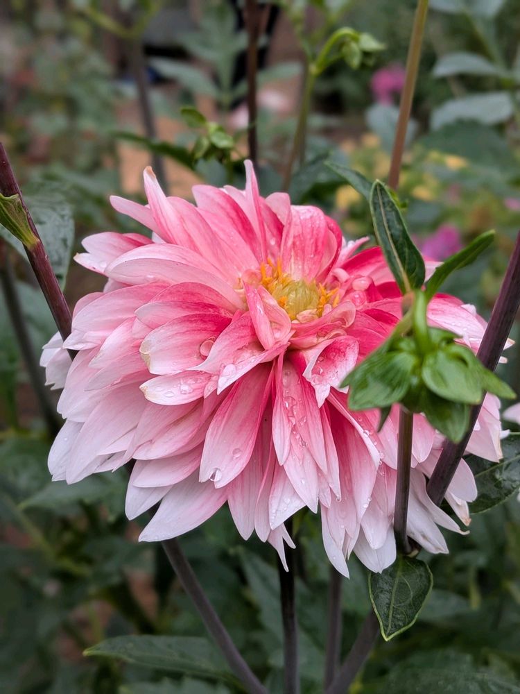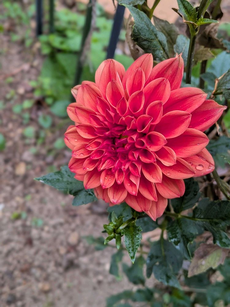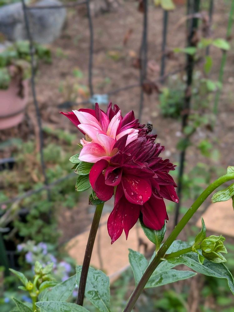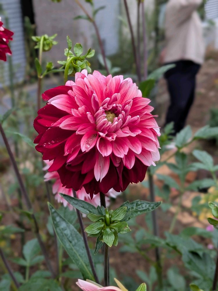 ダリアの花一輪でニ色の花弁はお得な感じ、可愛さ、豪華さ感じます