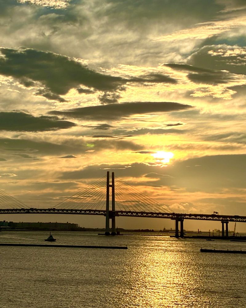 横浜港の朝日🌅はベイブリッジが有るから良かね🛳️