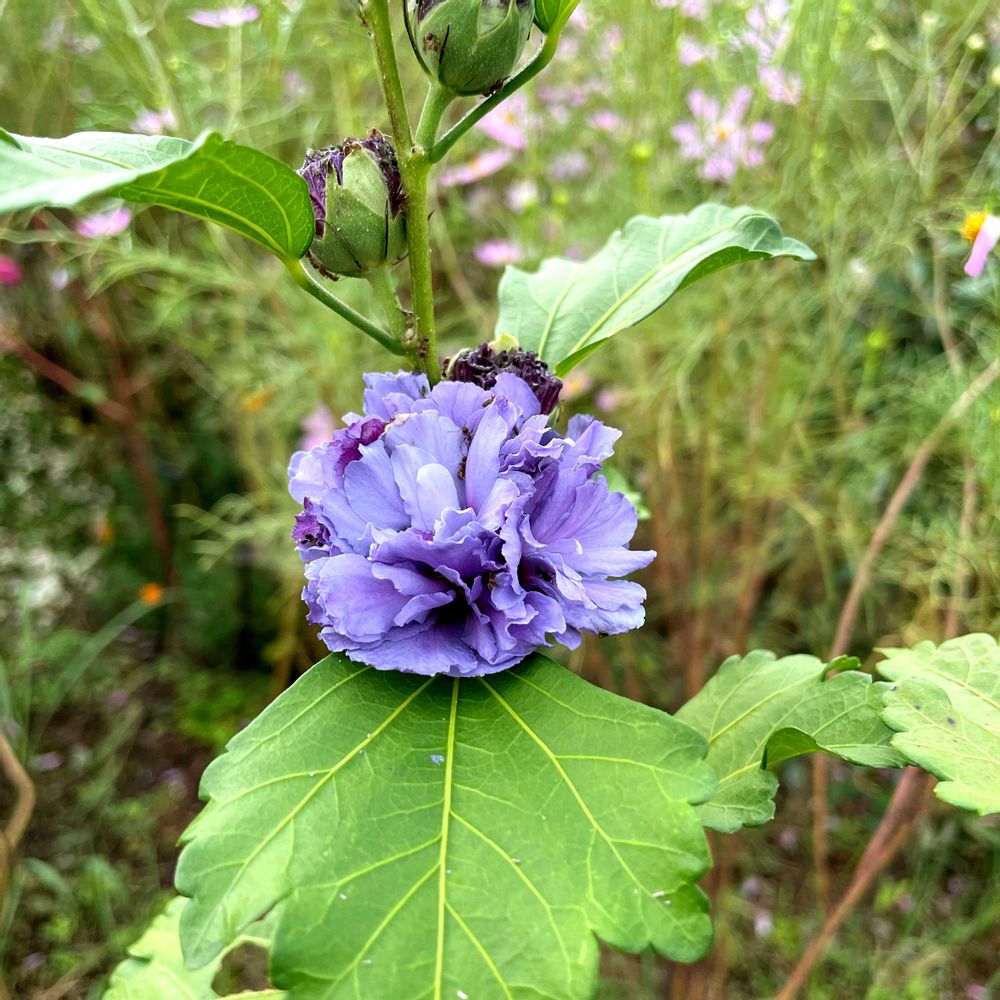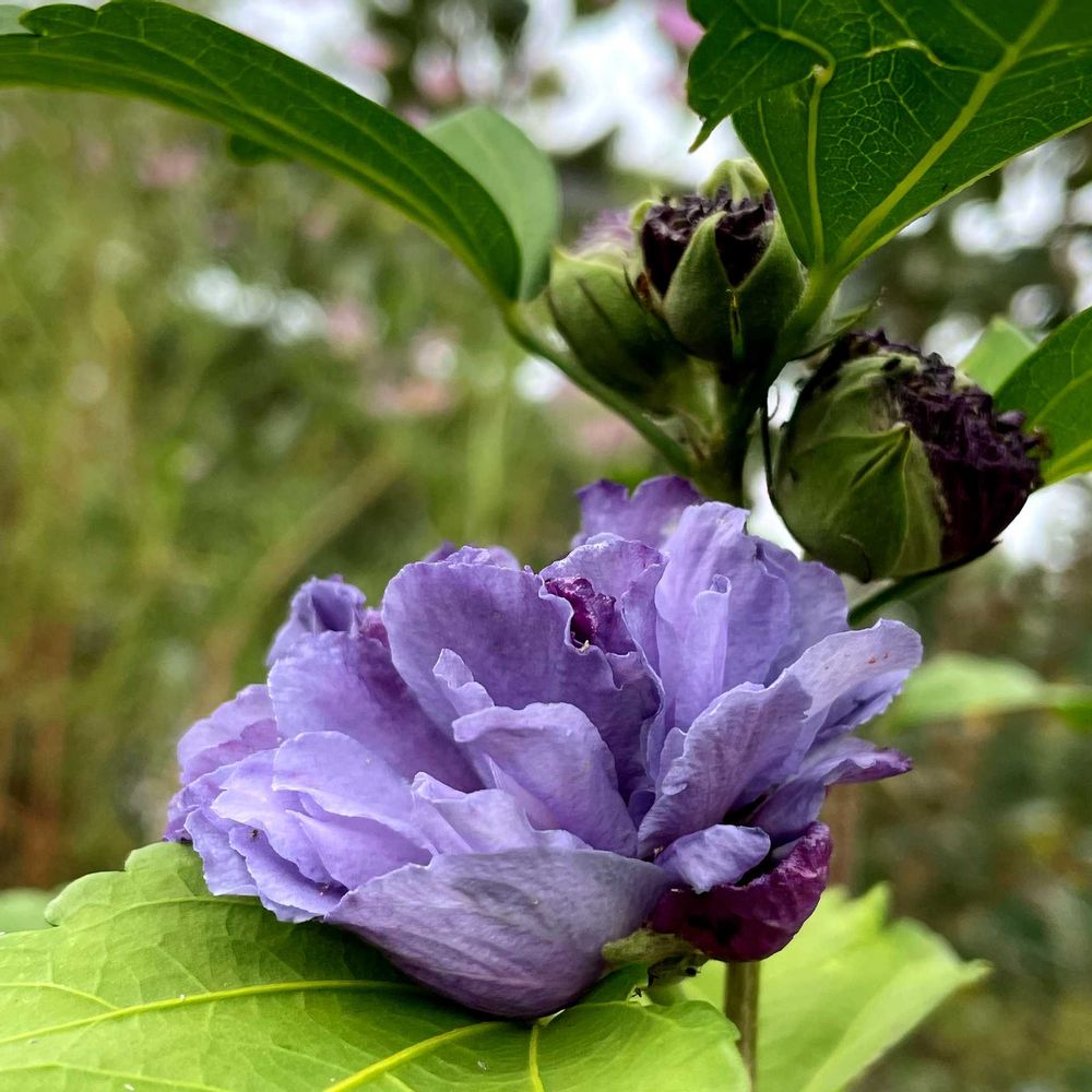 去年小さな苗を植えた紫色のムクゲ 咲いてくれました😊嬉しい💜