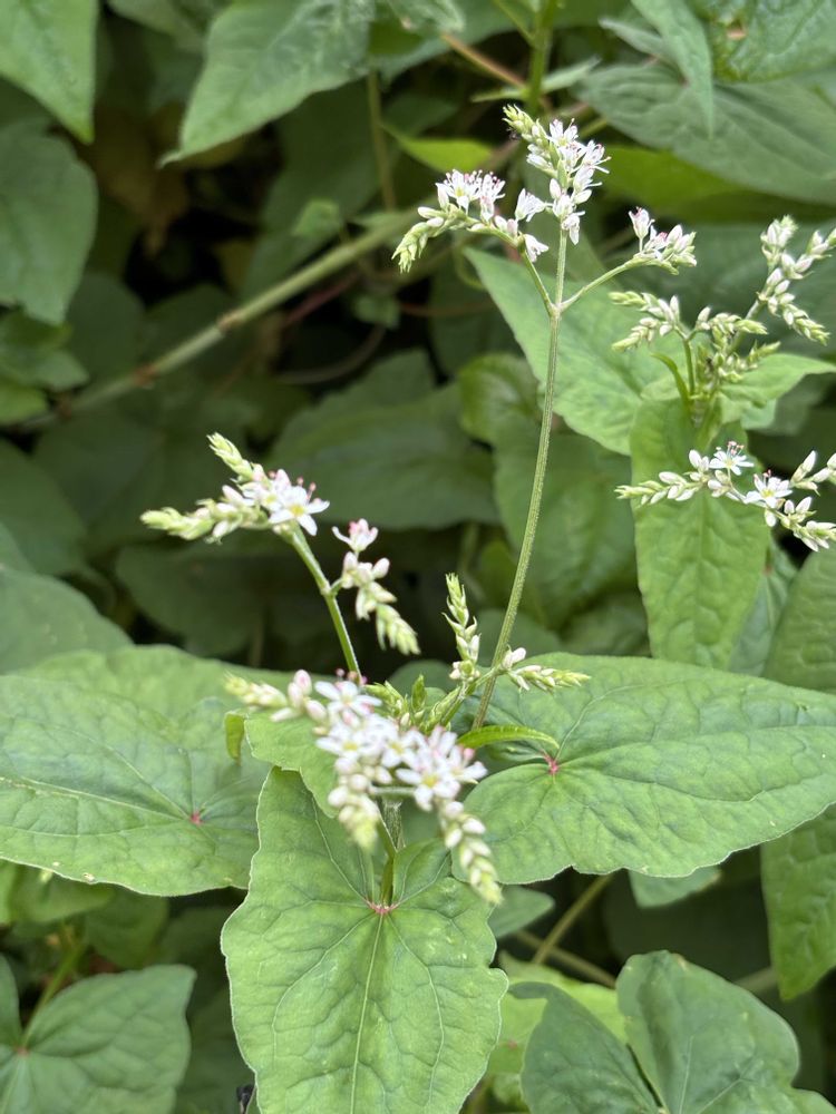 葉の形が河原にあるのと少し違うようにも思えましたが、ワサワサと茂っている様子と花序に近い葉も茎を抱いていないように見える事からシャクチリソバではないかなと思っています。