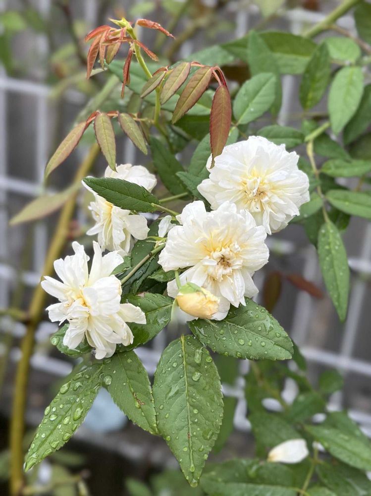 ハゲ枝から赤い葉が沢山出て、ようやくモーヴァンらしく咲き出しました🥰