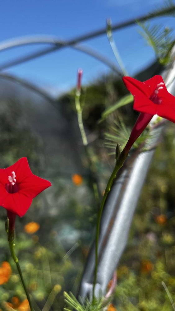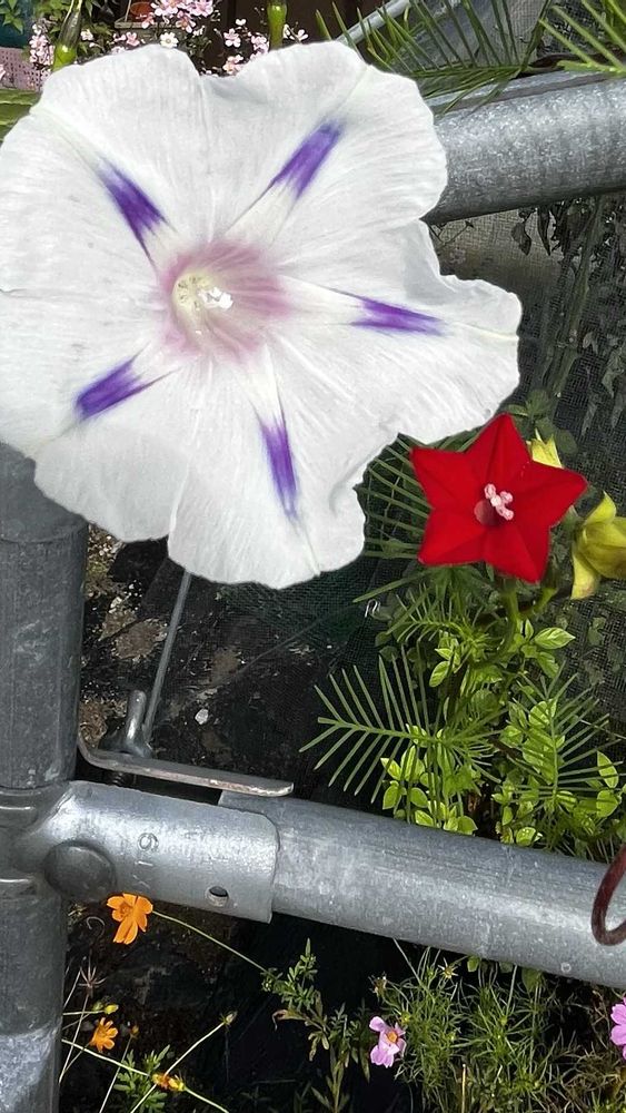 今年は何故か赤花ルコウソウがこんなところに😅数年前に赤と白の両方の種子を頂いたのに何故かほぼ白だけになってしまい💦去年はどこかの鉢に一株だけあったような🤔この場所にはなかったはずなのに😅