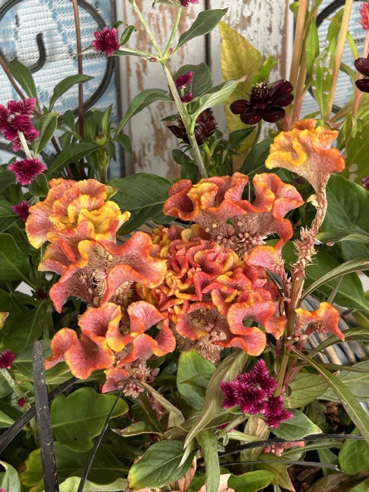 今月はハロウィンで🎃昨年先輩が赤ケイトウを使ってるのを見て狙ってました❤️
