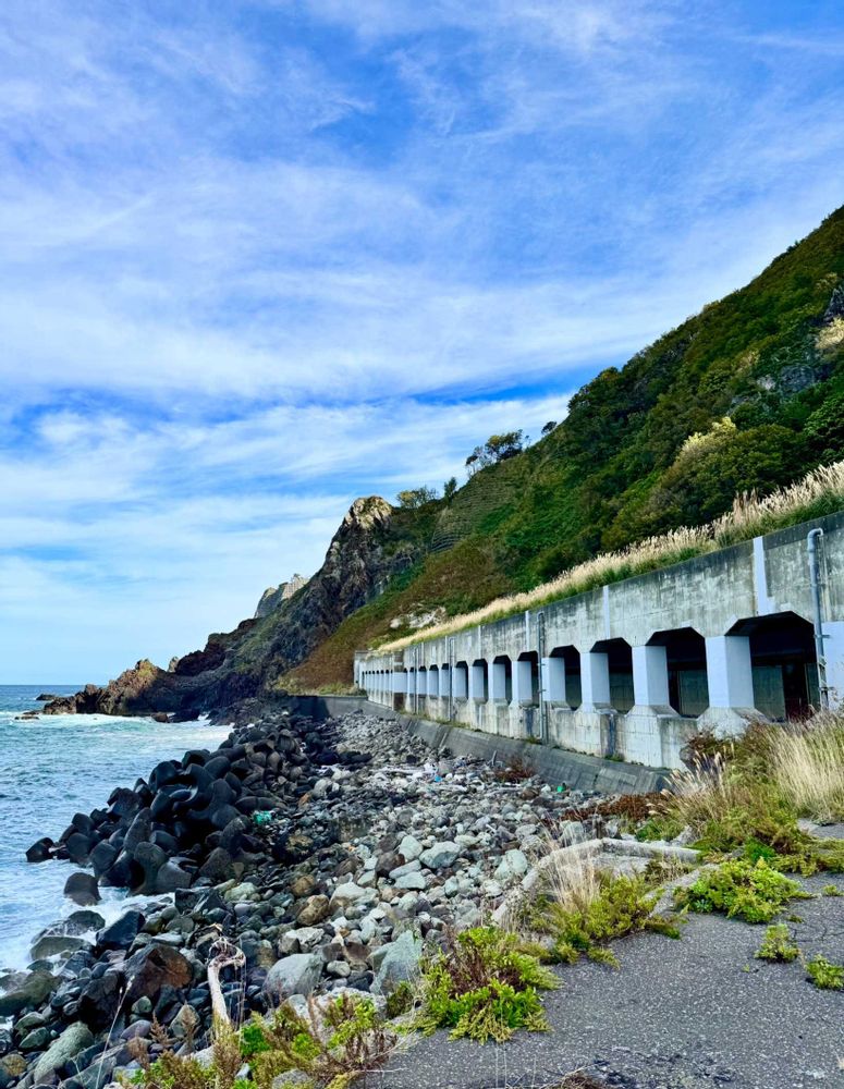 海側から見た👀スノーシェッドが雰囲気がある建物に見えました