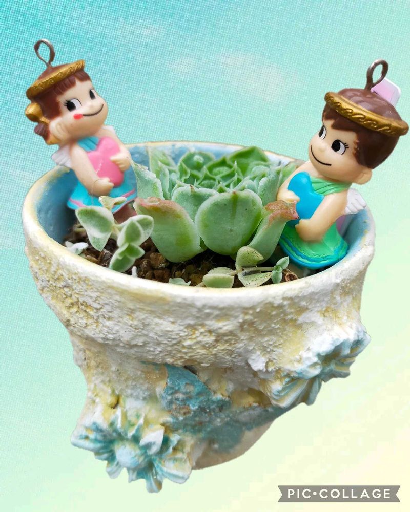 3枚目 fukumomoさんの素敵なリメ鉢にペコちゃん&ポコちゃんの天使バージョン😇💕