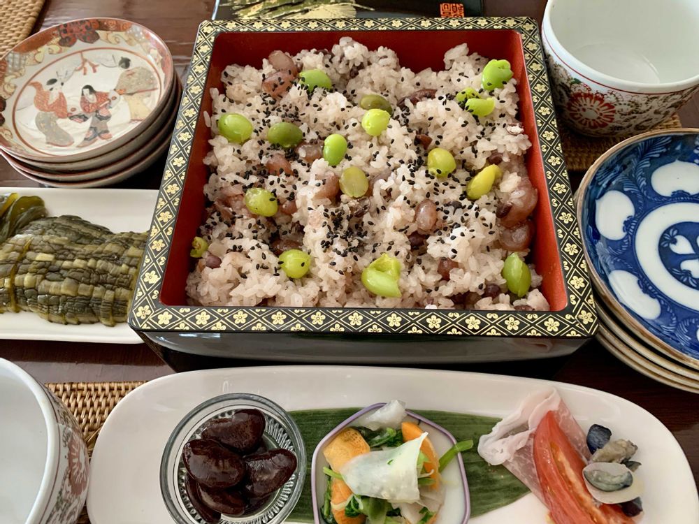 拾ってきた銀杏と甘納豆入りおこわ炊きました