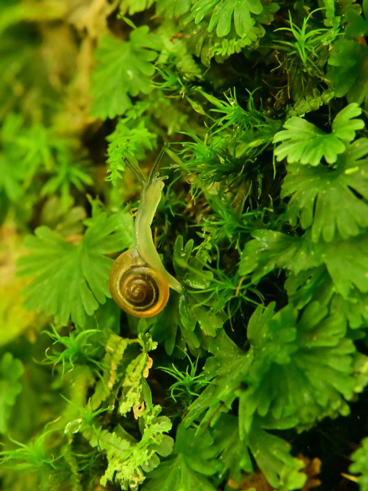 1枚目の写真、瑞々しい苔に、初々しいカタツムリの赤ちゃんがいて、素敵ですね😊