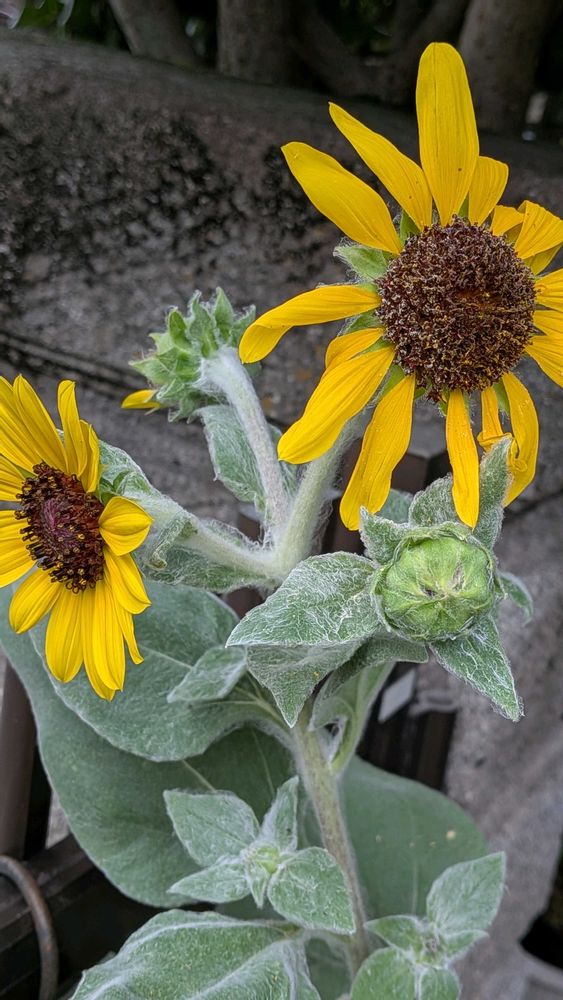 ④銀葉ヒマワリ2番目の花が咲き、3.4の蕾が待機してます。