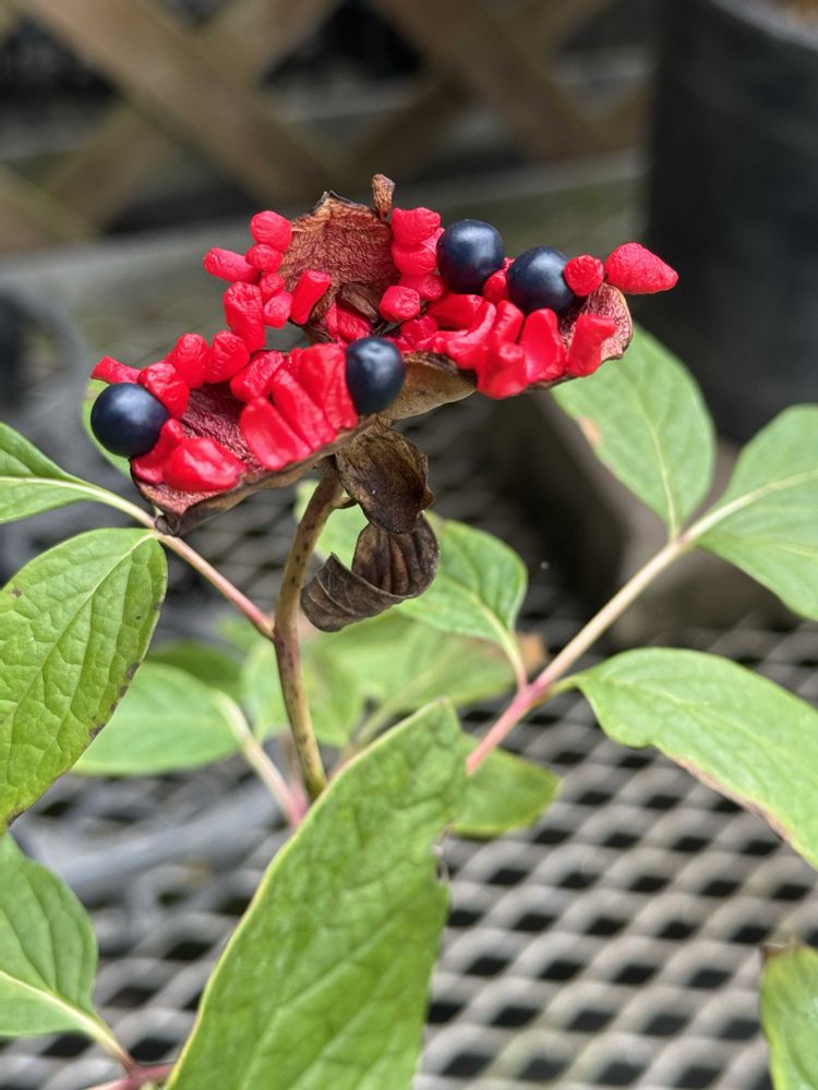 花から実への変化に驚かされました。真っ白な花からこの赤と黒の実になるとは‼️