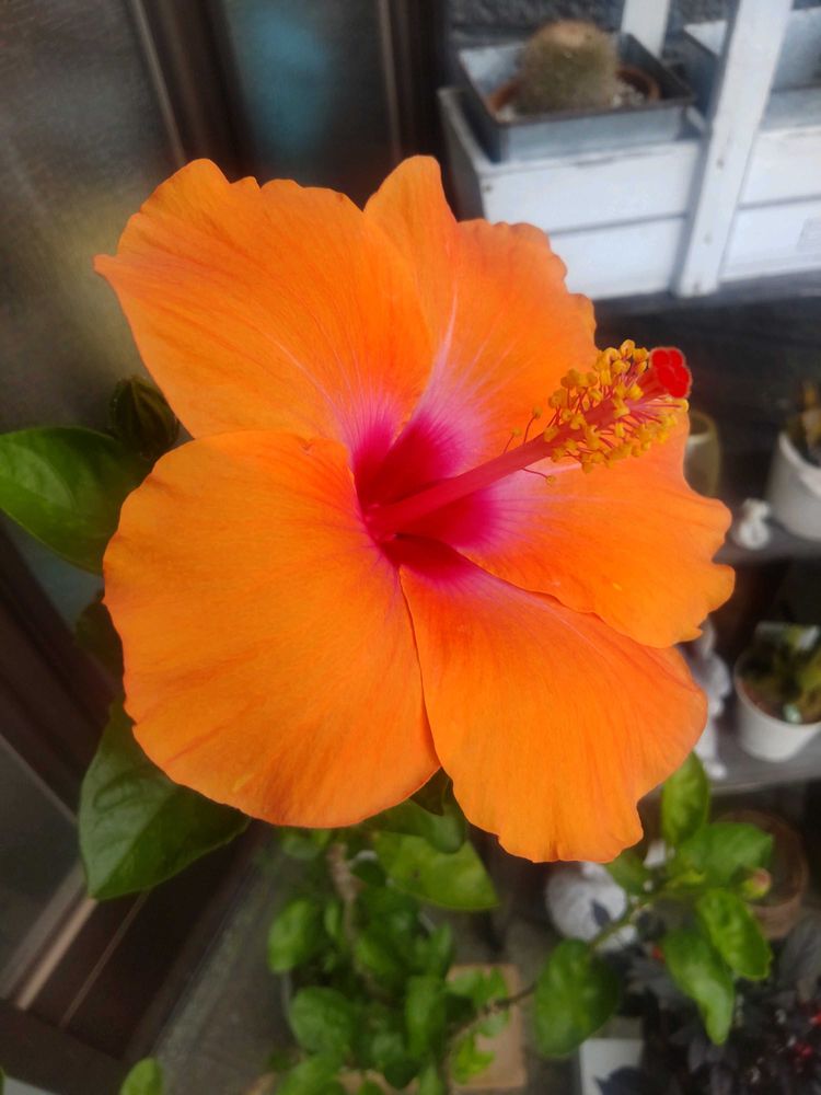 ハイビスカスも玄関で1輪ずつお出迎えしてます
