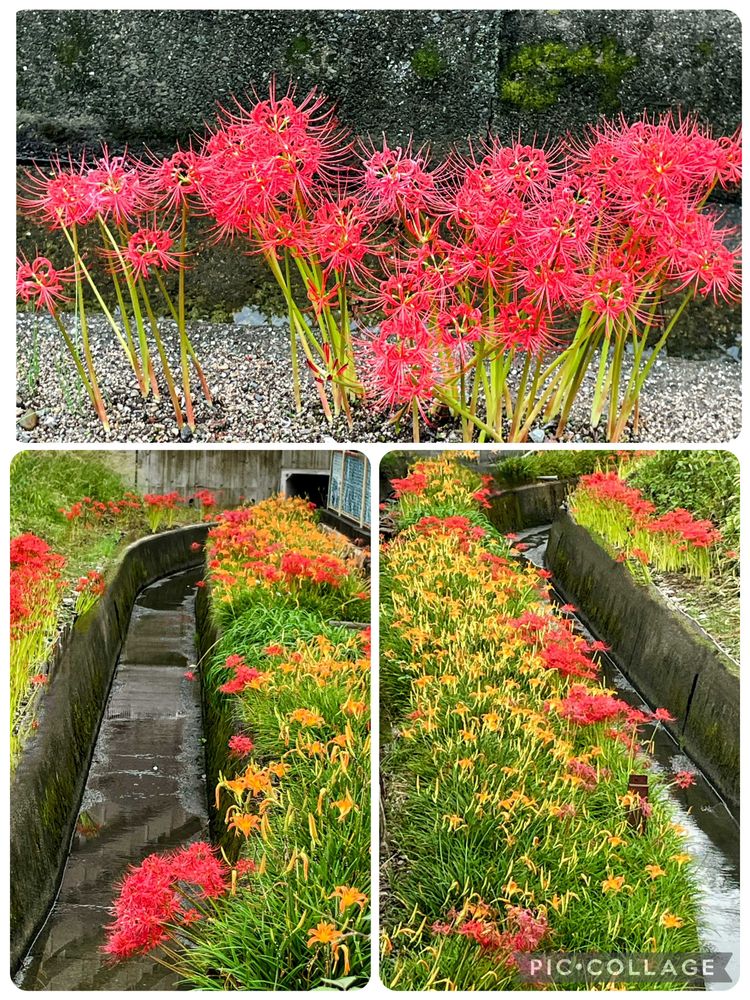 m&oさんの仕事帰りに,彼岸花とノカンゾウ,通り道のスーパーの側溝土手にの投稿画像