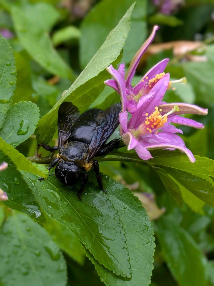 真っ黒な見たことなかったクマバチさんスイレンボクの後ろにず~と隠れていました👀ドウシタノ?