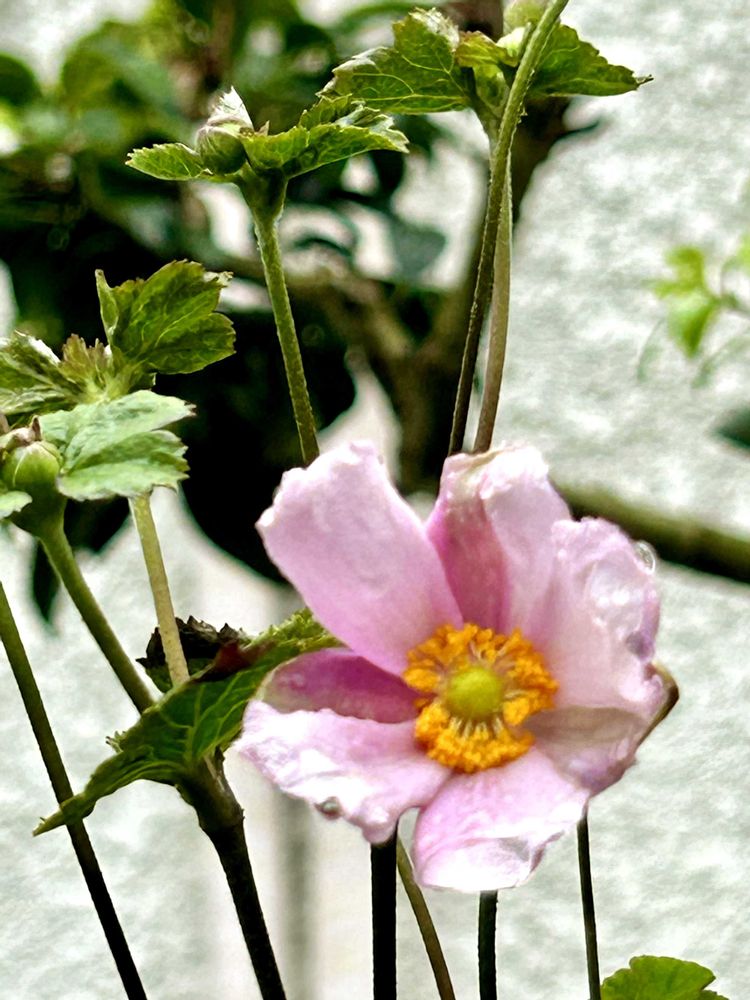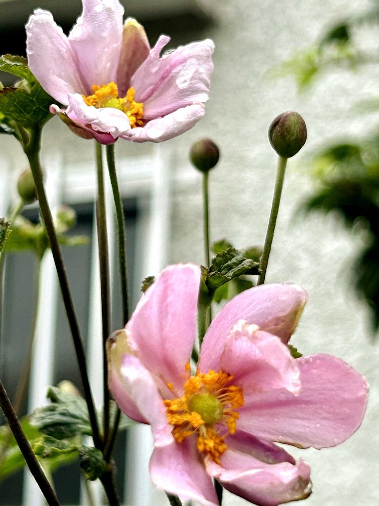 シュウメイギク、ぎおんまつりは背が低く、八重の秋明菊で少し前に咲き、2枚目は何年もあるシュウメイギクでとてもせが高く咲き始めました🤗🌿💕🌿