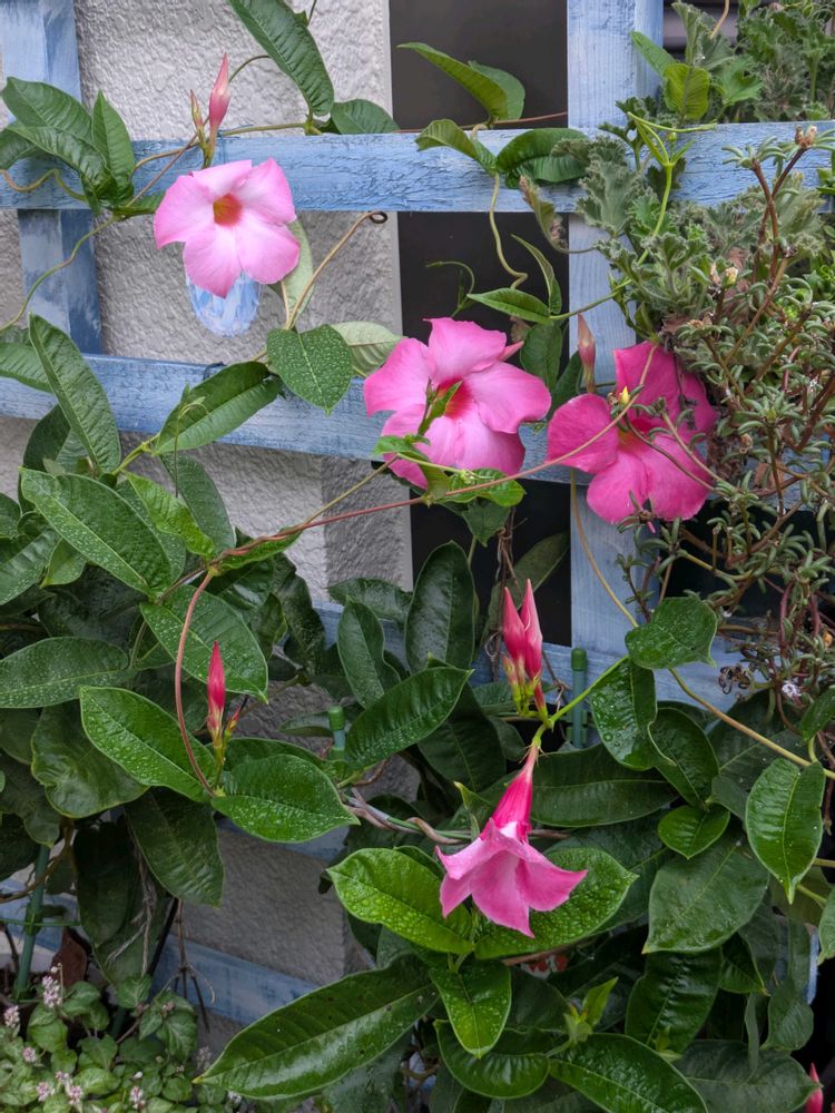 お買い得マンデビラ、スーパートレニア、よく咲いてきました。
