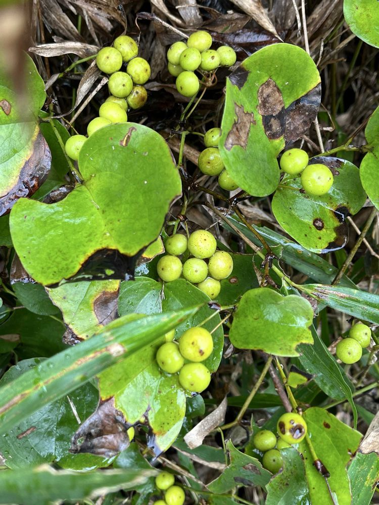 サンキライはクリスマス頃に出回る赤い実は馴染みありますが、赤くなる前の緑色で見かけるのって珍しくって🟢