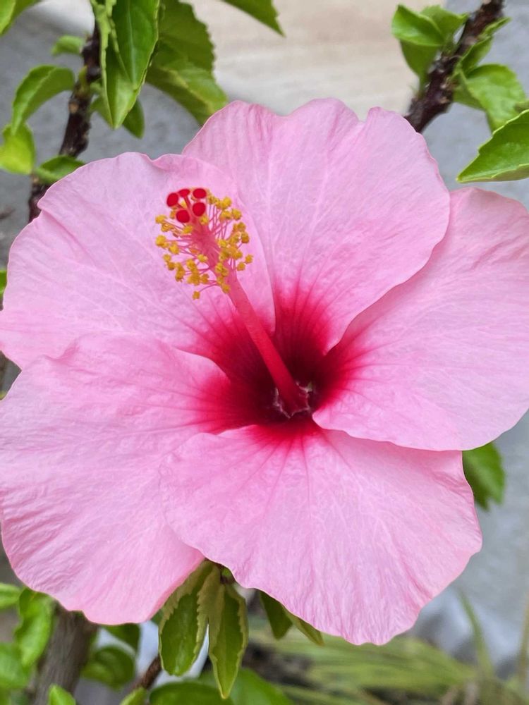 お庭に 黄色🟡とピンク🩷のハイビちゃん 見てたら 楽しくなるねー♪