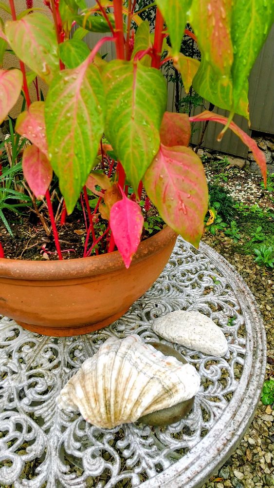 ケイトウの葉っぱが赤くなって☺️ あゝ秋ですネ~🍀