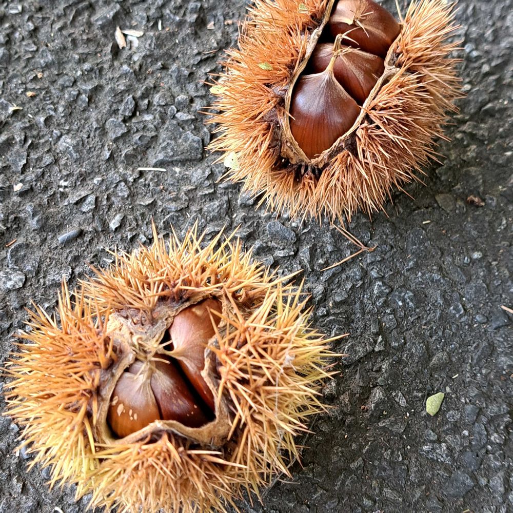 綺麗に渋皮まで…指が痛くなるから、ゴロゴロ落ちてても拾わず動物が食べるだろうと置いたまま😅💦💦💦