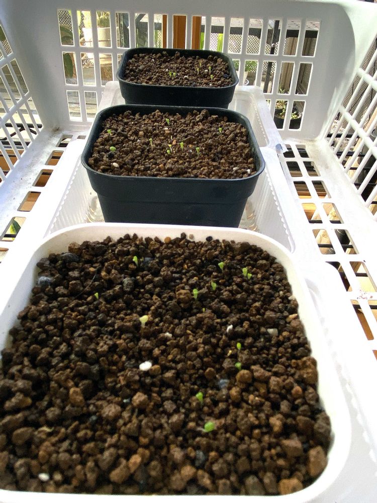 6日前に播種したMIXリトープス達☺️説明書によれば曲玉、荒玉、紫勲玉、日輪玉、大津絵、朝貢玉、巴里玉、花紋玉、富貴玉、マルモラータ、トップレッド、アルビニカ、フーラーグリーンなど。。名前聞いても全く分からないけどかわいいのは間違いない😆🥰