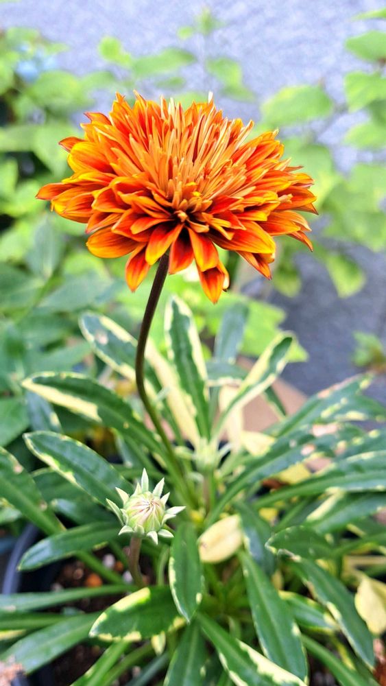 ③枚目…先月お迎えしたての「斑入り宿根ガザニア・ダブルハーモニー」🧡さん、葉っぱだけでも楽しめそうです🤭
