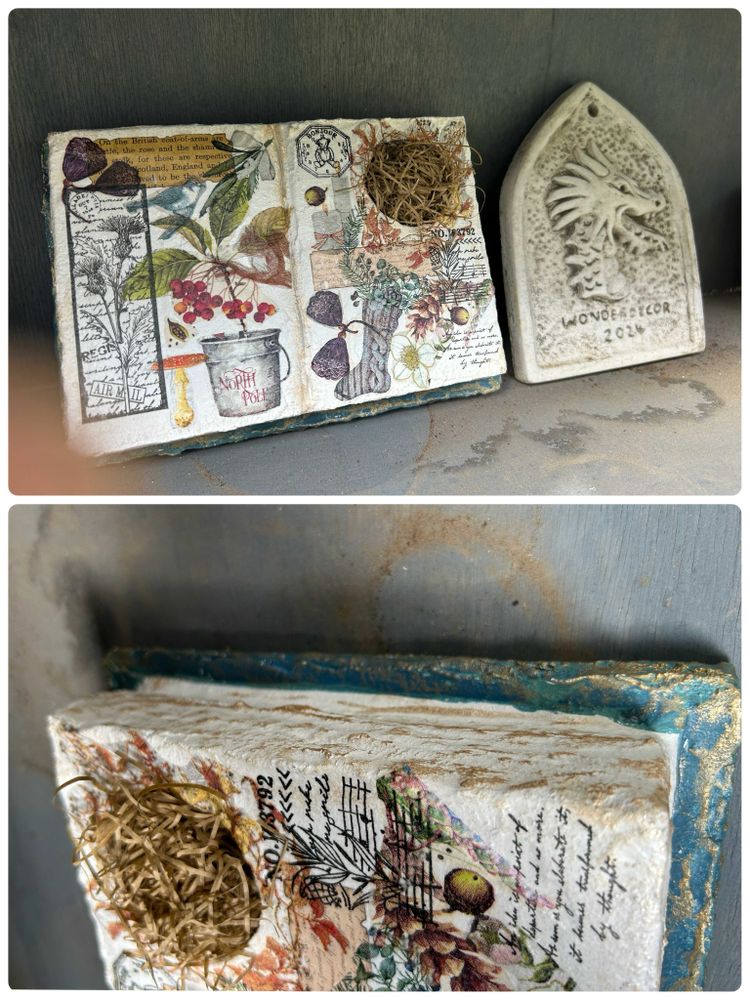 初のモルタルブックでデコパージュを欲張り過ぎた感が😅