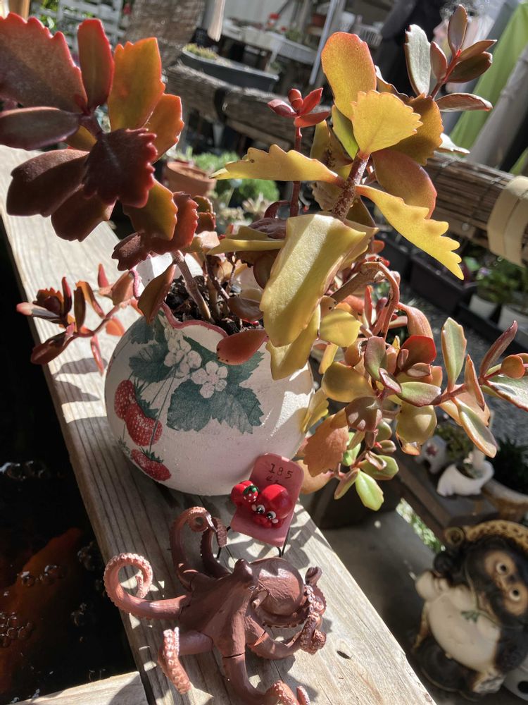 いちごみるくちゃんのデコパ金魚鉢にカランコエ【赫蓮】🔴この子強くて、無人販売にも増やして出せてる💕