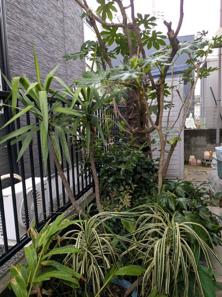 裏庭では長寿鉢植えユッカが地面に根付き大きく成長中!!