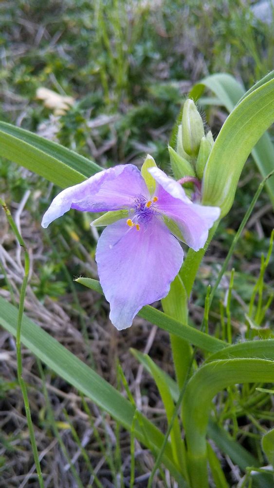 オオムラサキツユクサではないかと思います 近くにあるお寺の境内の庭に しとやかに咲いていました 過去に投稿したムラサキツユクサと違って 萼に毛があり 草丈が比較的低いという特徴が顕著でした