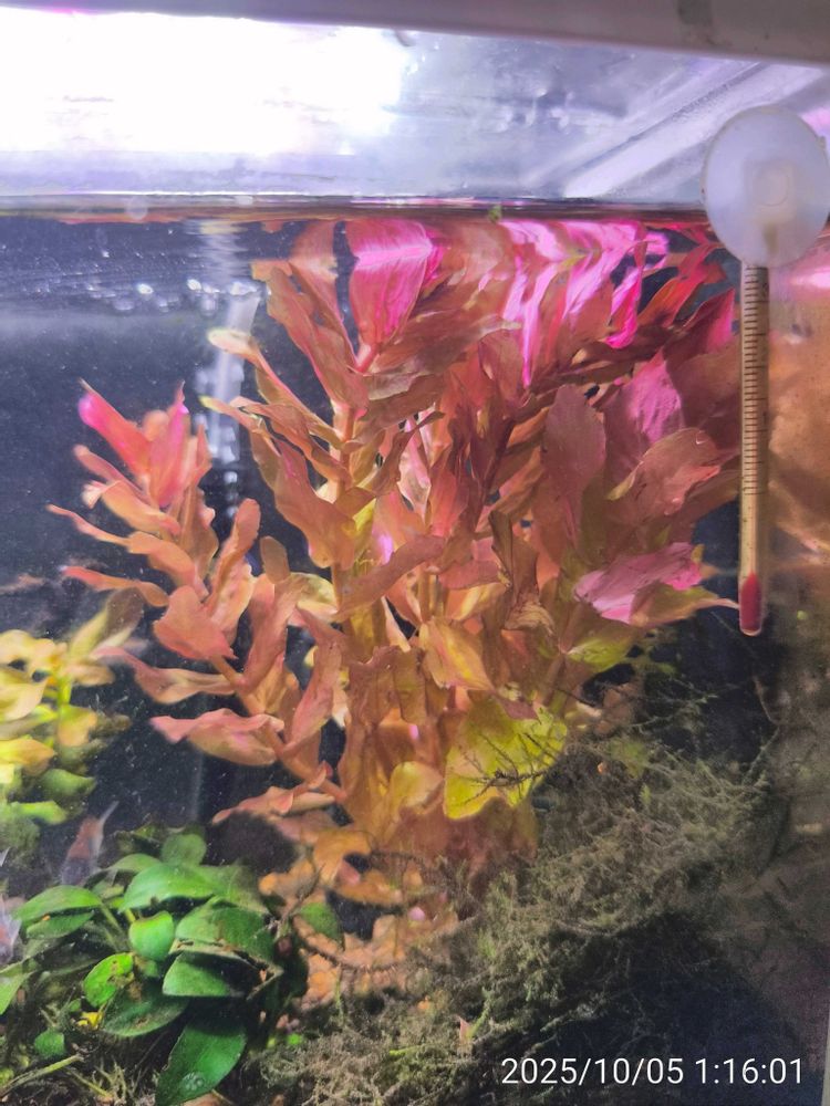 水槽内の機材を隠すための背の高めの水草をチョイス。色味も欲しくて最終的にレッドリーフバコバを導入。