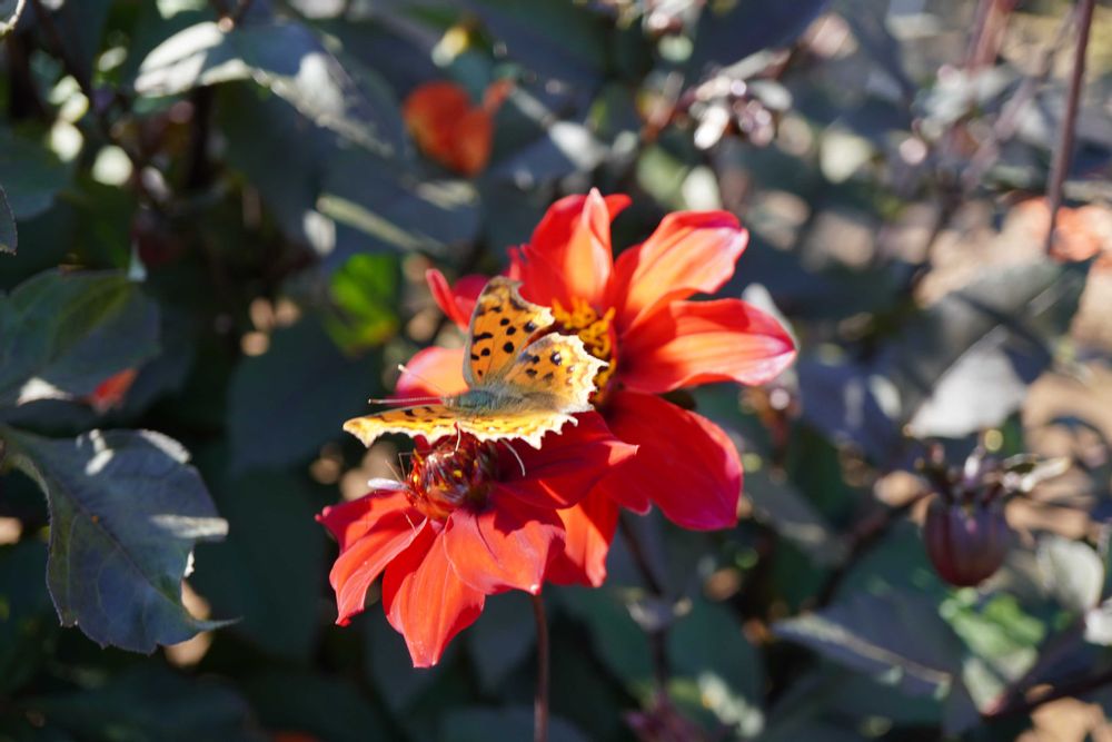 ❤️黒葉ダリアに訪花するキタテハ🦋