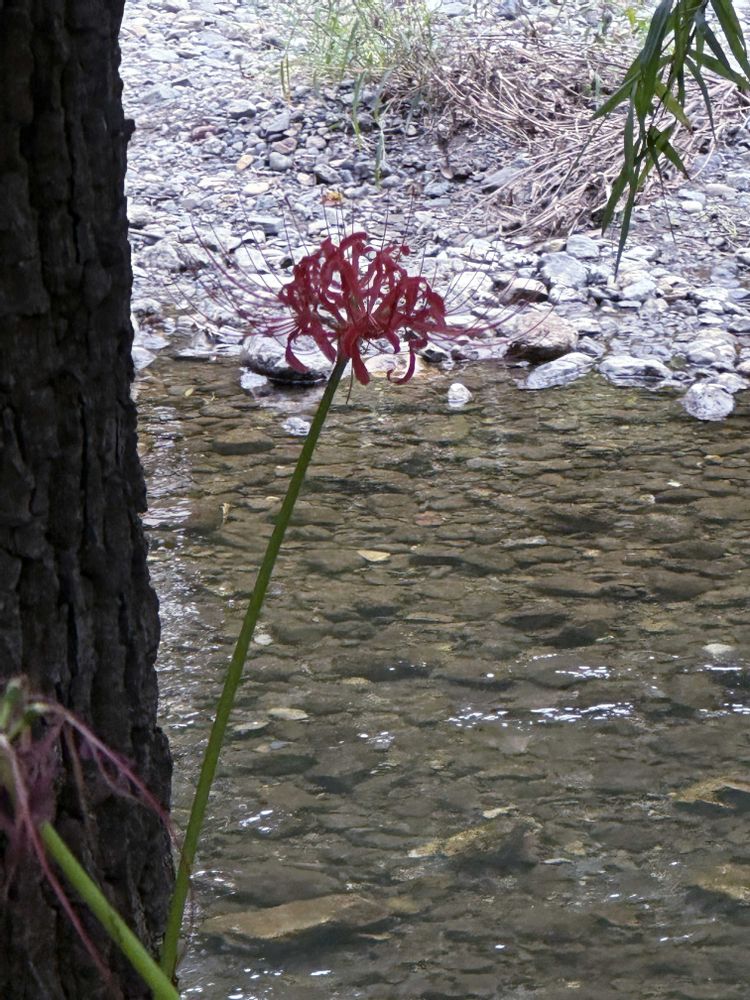 EMI様。 小川のほとりに1輪の彼岸花がひっそりとたたずんていて、素敵な風景ですね👍✌️