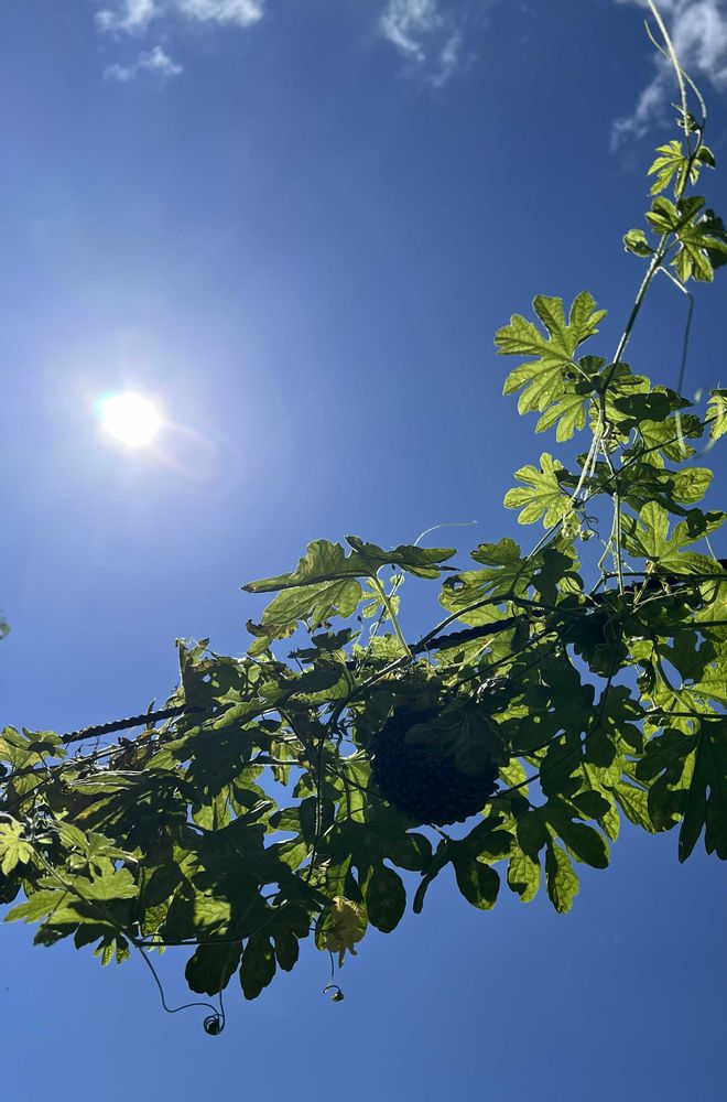 ゴーヤが空を飛んでいるようにみえます。テヘッ、(๑˃̵ᴗ˂̵)