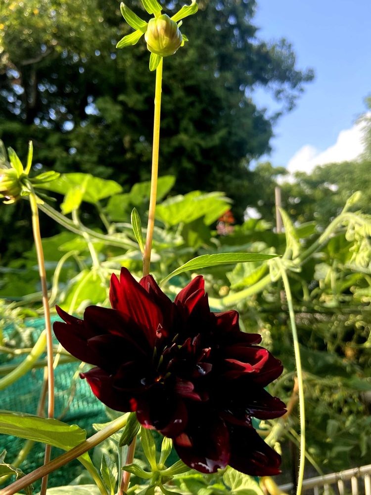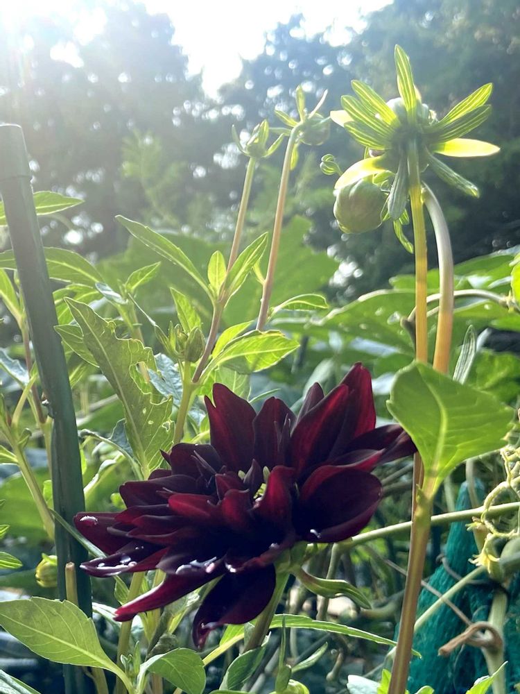 雨も上がり、太陽☀️の光を浴びてより妖艶な顔になった黒蝶ダリアさん💖🤎を見て欲しくて連投です😫