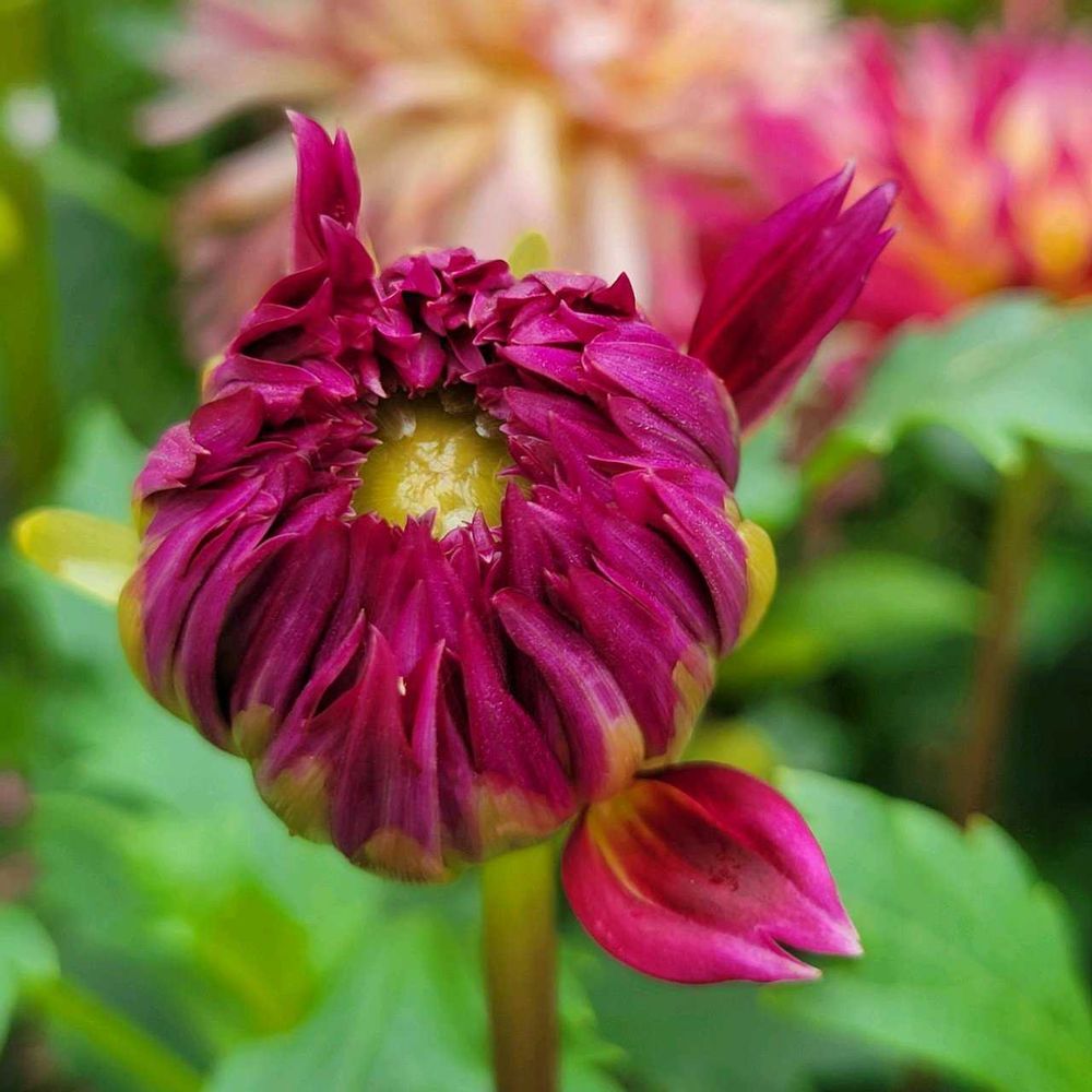 公園で見つけた可愛いダリアこれから開花しま~すまずは一枚目の花びらから…🥰