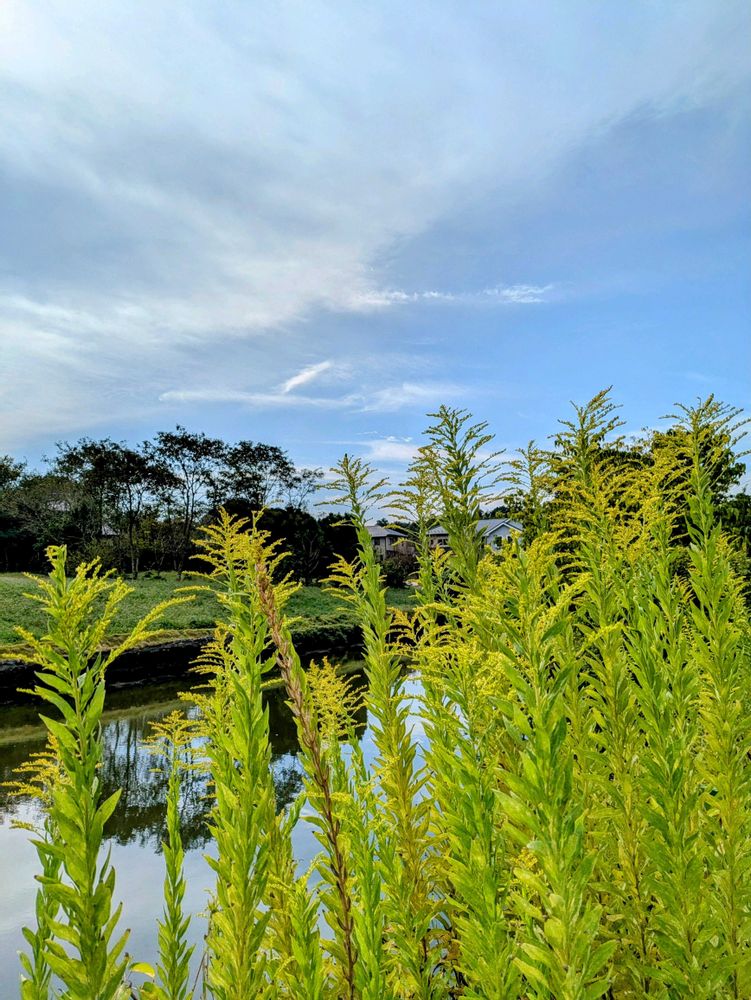池の畔に伸びていたセイタカアワダチソウ🤔