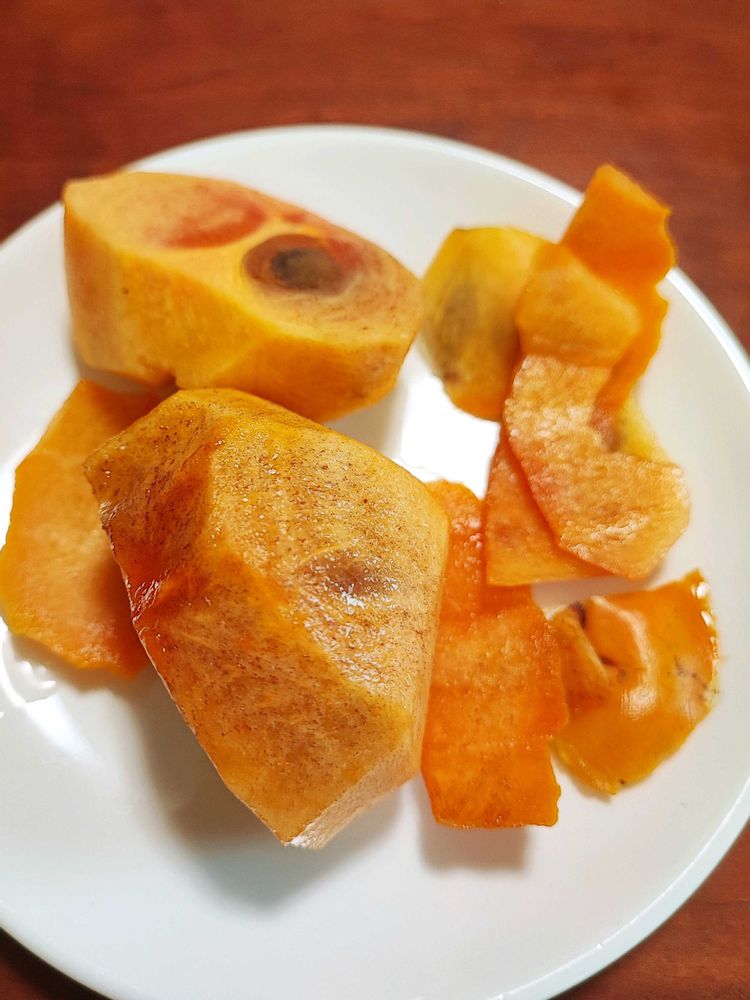 うちの柿2号、東京紅が熟したので取ってきて試食しました。渋みもなく普通に美味しい柿だな、って感じでした~笑