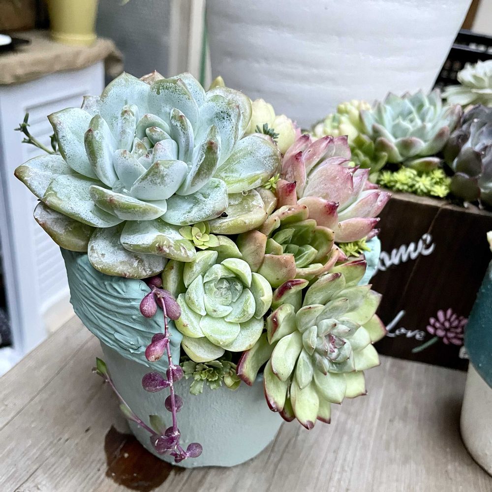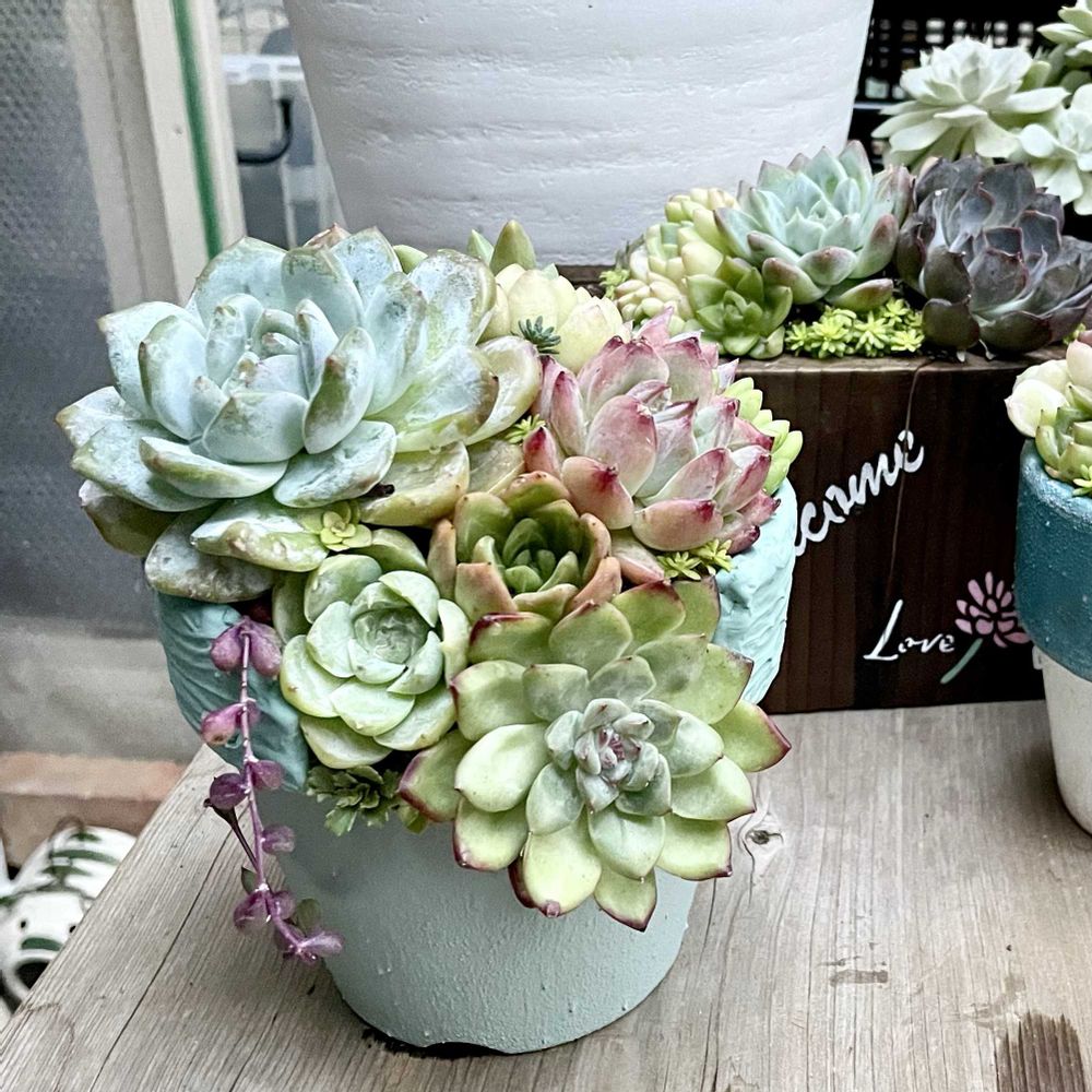 きょうは縁の欠けた鉢に寄せてみた🪴