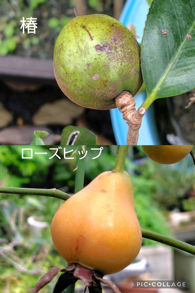 ⑤鉢植えの椿に実が一つ ついてます オレンジ色になってきた ローズヒップ