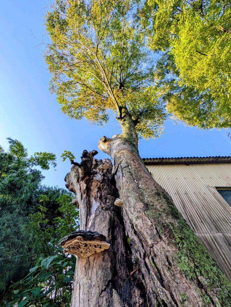 枯木の中間辺りに生長したコケ、これこそ正にサルノコシカケタケですね🍄🟫