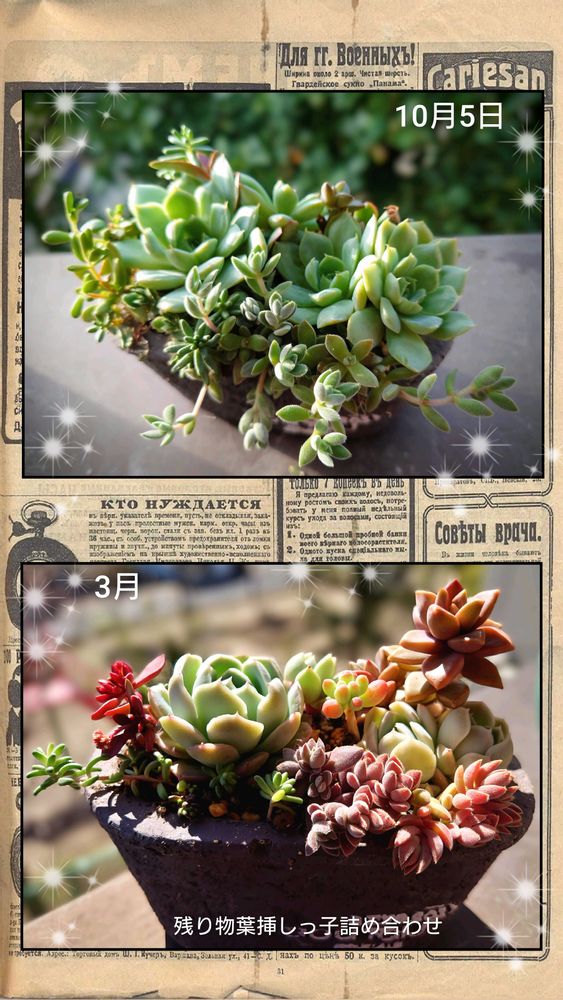 3月に寄せ植えに使いきれなかった葉挿しっ子を詰めといたら、意外と可愛くなってたやつですが…