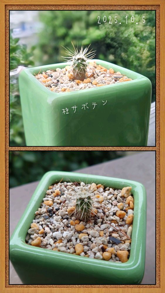タネからサボテン🌵ちゃん‼️ お姿がサボテン🌵らしくなってきてるね〜😍 2cm弱かぁ〜 株元が心配ではあるけど… 今は秋の成長期‼️ 頑張って〜😆🎶 次の続報楽しみにしてるよ〜😆🎶