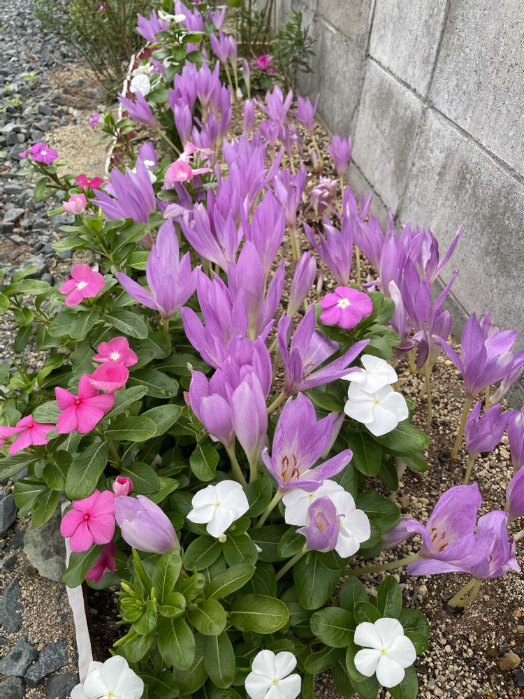 ヒロじいじいさんのコルチカム,日々草,小さな花壇の投稿画像