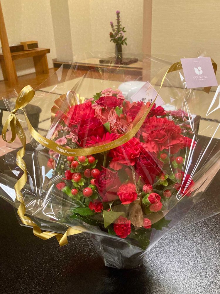 お祝いの赤いお花をプレゼントしました🌹🌿