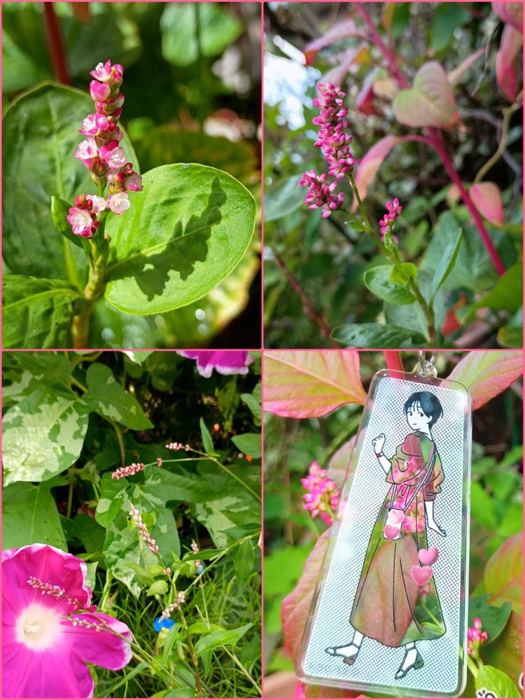 ↘️ケイトウの葉と藍を纏った👗あおいちゃん
